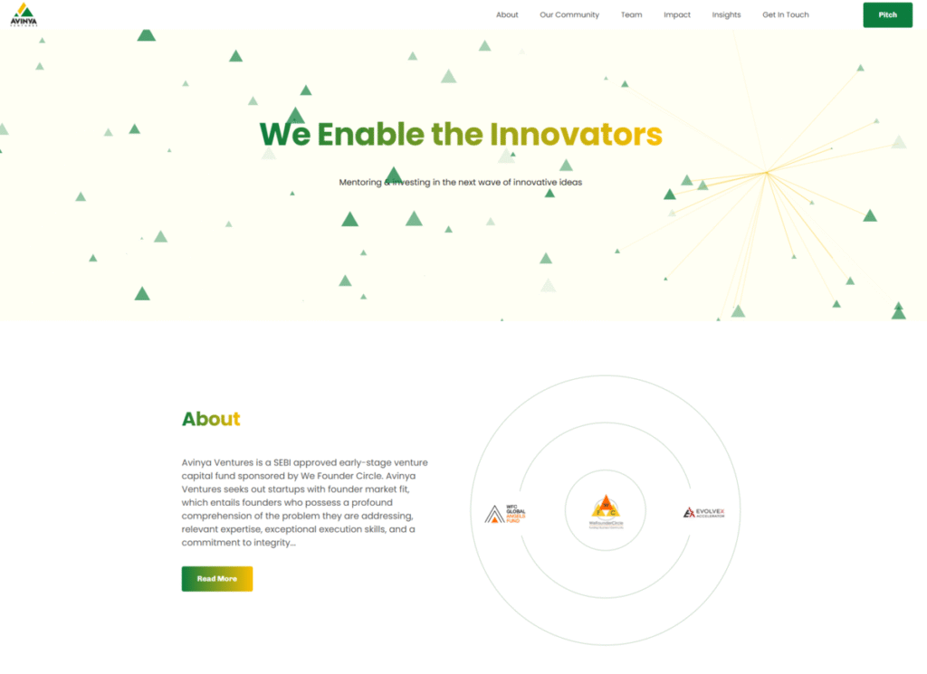 Avinya Ventures is a SEBI approved early-stage venture capital fund sponsored by We Founder Circle. Avinya Ventures seeks out startups with founder market fit, which entails founders who possess a profound comprehension of the problem they are addressing, relevant expertise, exceptional execution skills, and a commitment to integrity..